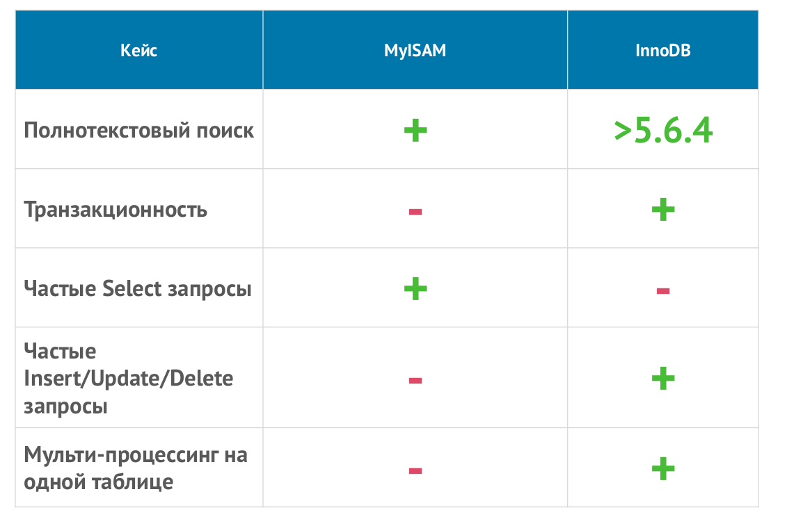 Некоторые из наиболее известных и широко используемых движков MySQL: